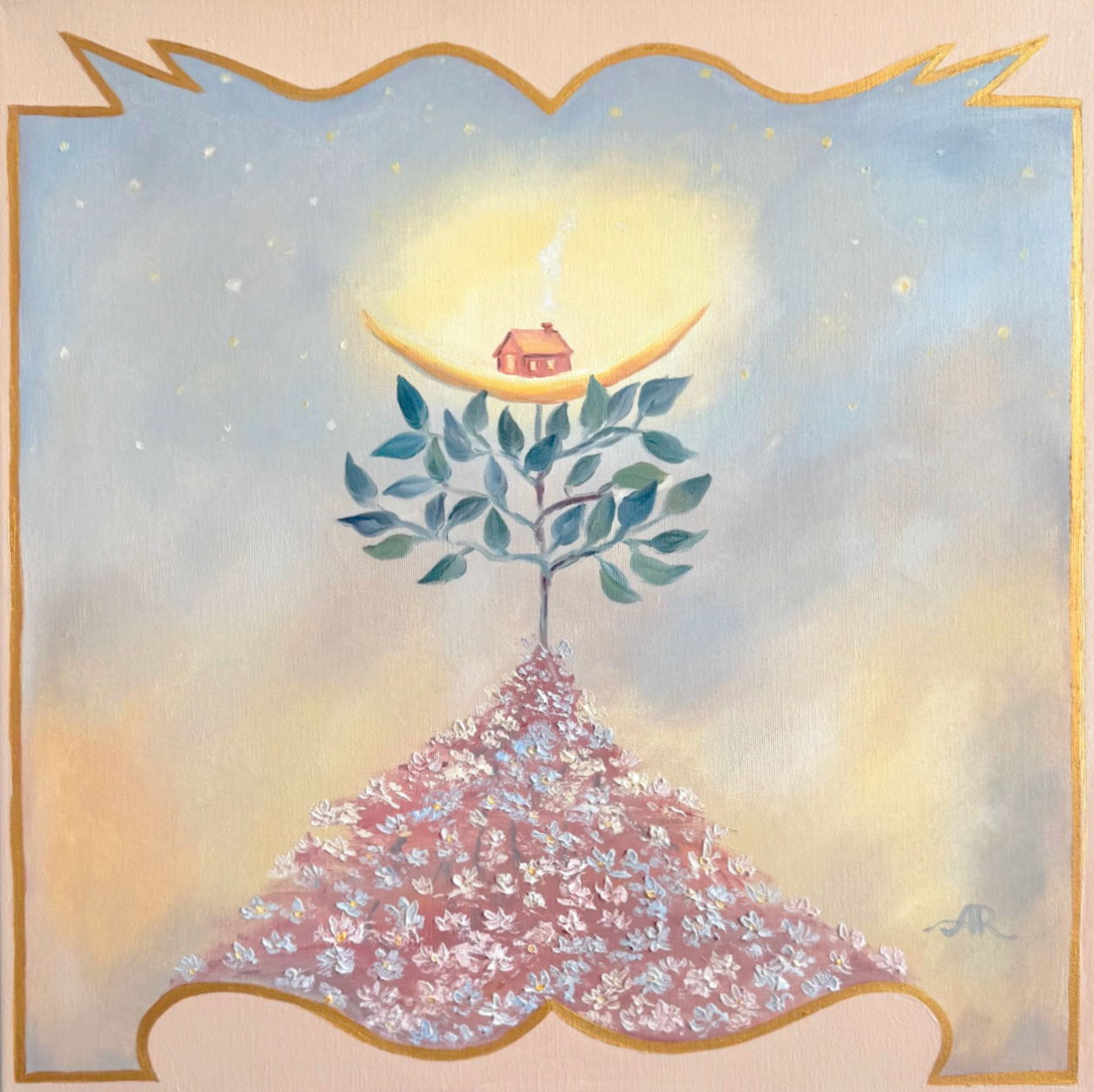 Картина про наш внутренний мир. Когда мы в гармонии с собой, тогда все вокруг освещается светом радости, мысли, идеи, люди проекты, возможности притягиваются этим светом именно те, которые нужны нам в этот момент.