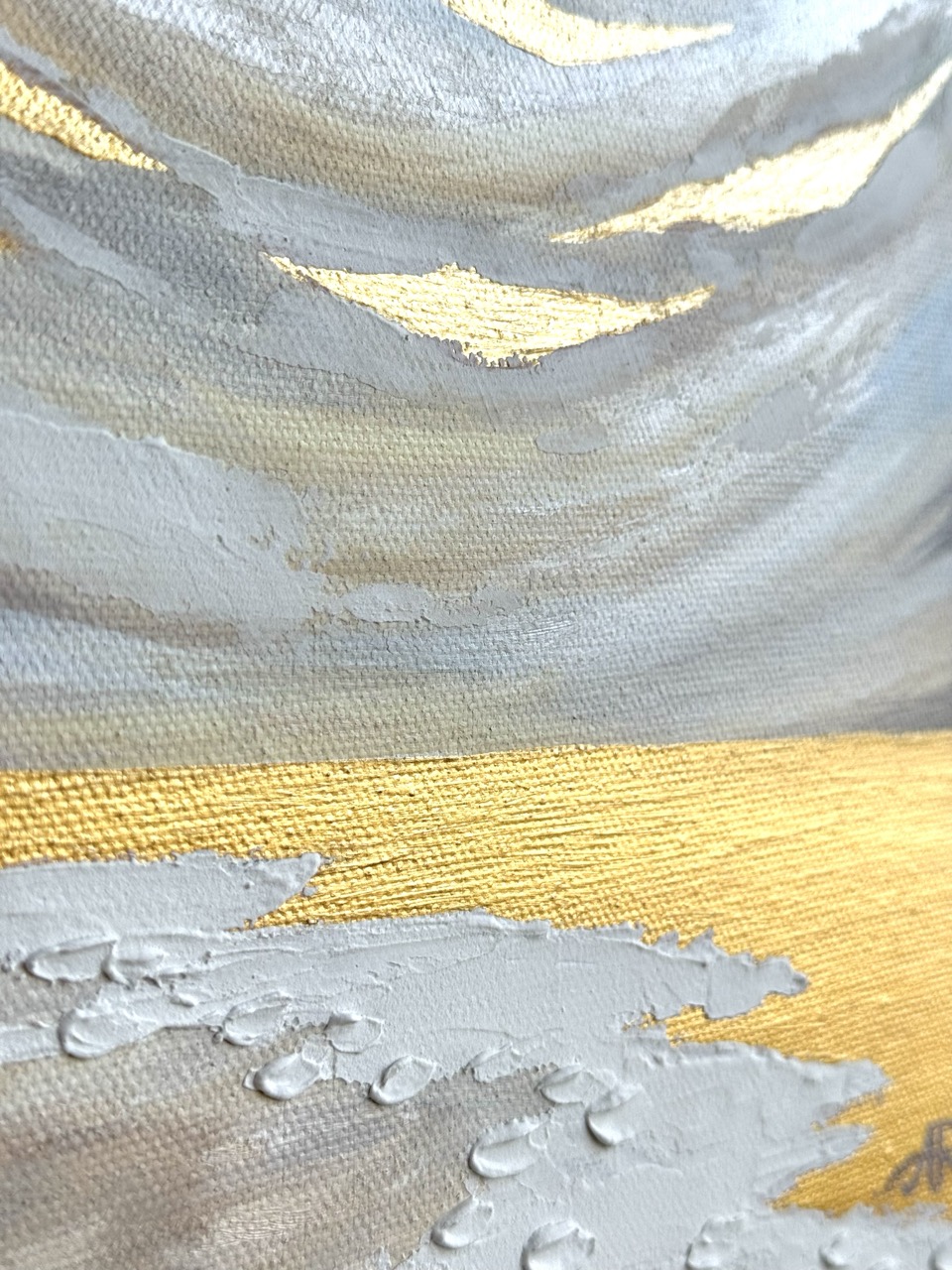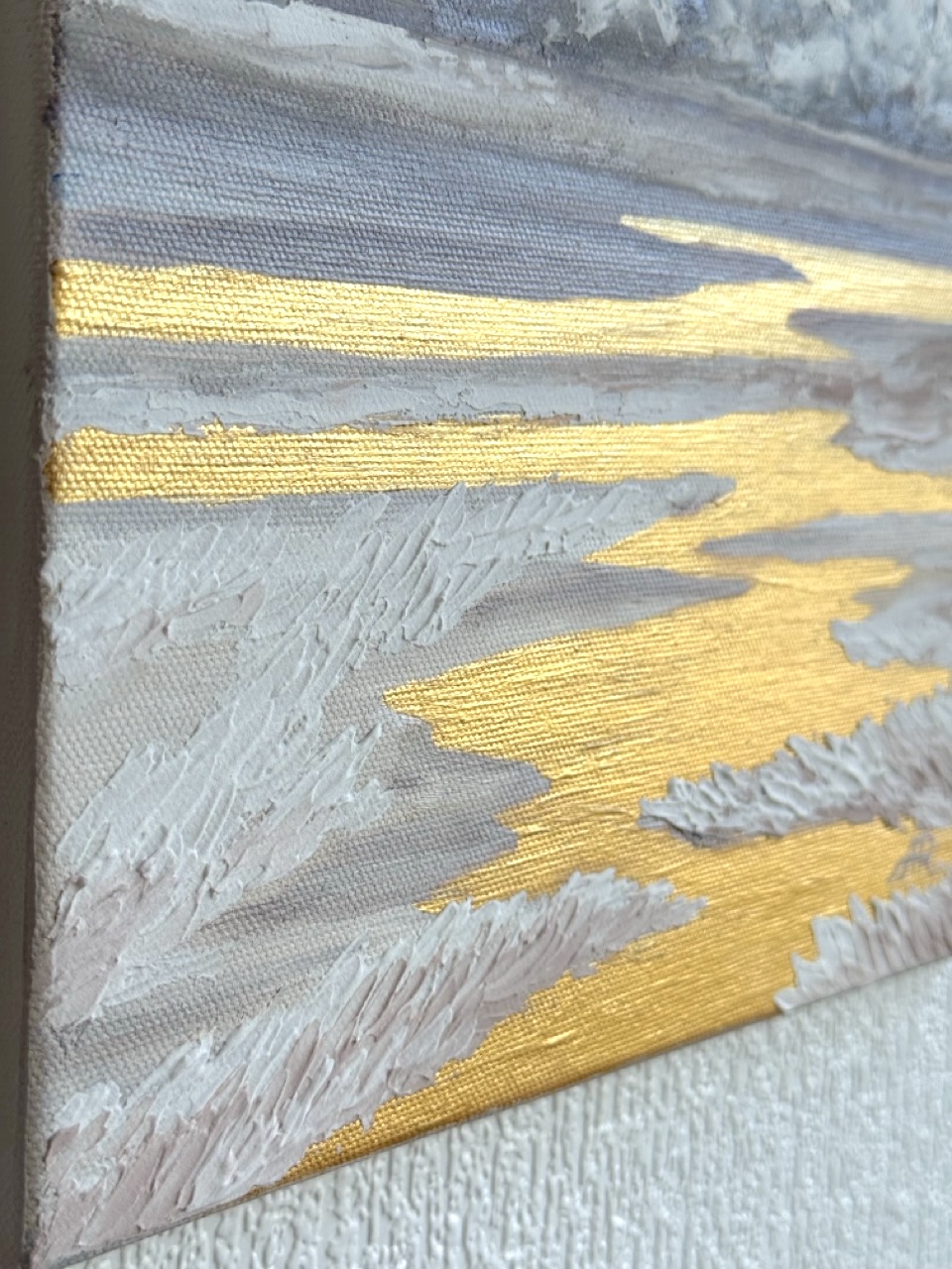 Размер: 50* 80 см. ДЫХАНИЕ СВЕТА. Вы можете почувствовать это в воздухе сейчас, как свет наполняет все смыслом, как все вокруг буквально оживает под лучами благодатного света. На рассвете дышится легче, беспокойство и страхи отступают. Через эту картину я хотела передать вам ощущение наполненности, радости настоящего момента.