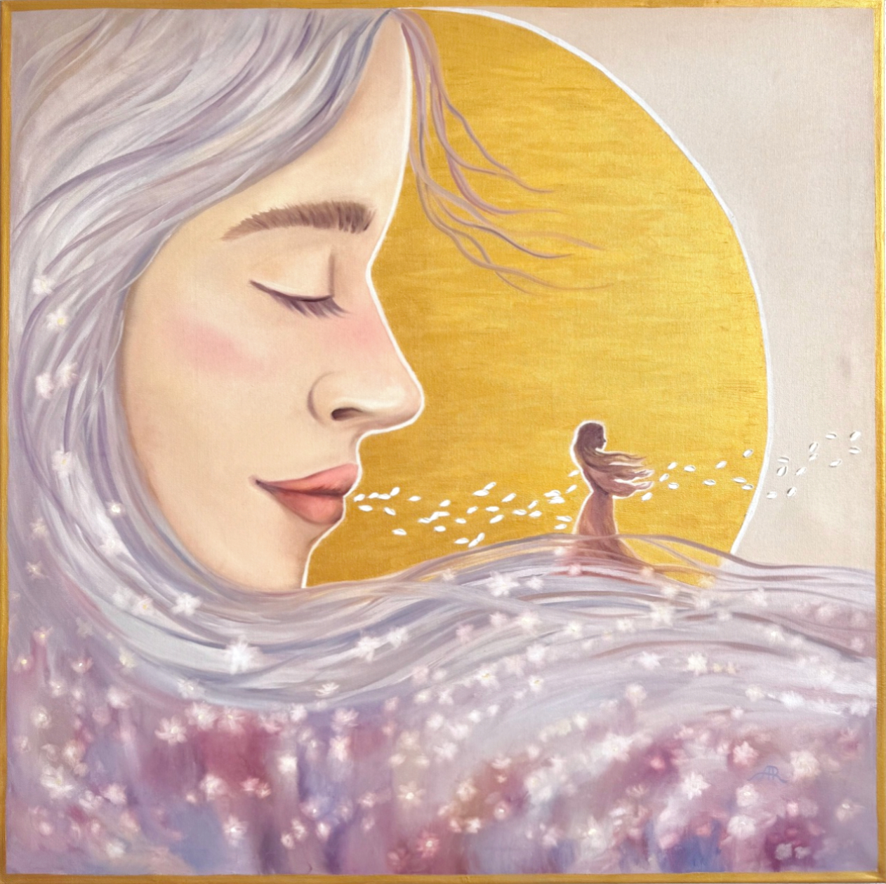 В этой картине мне хотелось раскрыть тему чуткости, ведь внутри мы очень ранимые, и кто как не мы сами часто себя ругаем, критикуем, высказываем сомнения. А что, если быть себе лучшим другом?! Самым бережным и понимающим родителем. Что, если говорить, теплые слова, оказывать поддержку, выражая принятие и нежность. Как мы можем вдруг найти те ключики к себе, которые откроют в нас самих эту силу, быть собой, знать себя и любить себя.