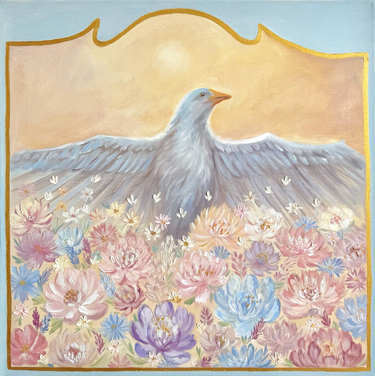 ⭐️Птицы предвещали хороший урожай и богатство. Их образы связывали с небом и высшими силами. Славяне считали, что птицы, сидящие на ветвях дерева,— это души людей, посланные на Землю Солнцем⭐️. 🌟🪷 На моей картине Птица широко расправила крылья и свои полетом несет весну, а с ней и возрождение к жизни, желание творить, создавать, радоваться, вкусно и красочно проживать эту жизнь!